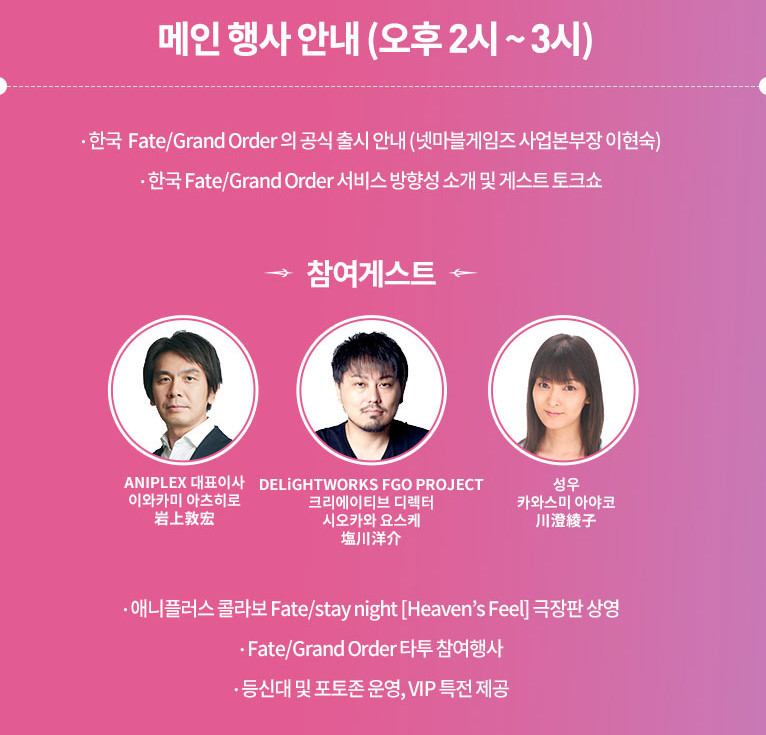 꾸루꾸루꾸루루 오늘이 마지막 날이에요!! [기타] 작성일시 : 2017. 10. 20 (16:29) 조회 : 2,138 / 댓글 : 0 지금 페그오 마스터 채용 오프라인 행사 신청이 오늘 까지더라구요.. 혹시 라도 안하신분 계시면 빨리 고고싱... 참고로 6시까지 라능.. 혹시라도 당첨되면... 진짜 보고 싶었던 헤븐즈 필도 볼 수 있고...헤헤.. 페그오 프로듀서가 게스트로 와서... 궁금했던 것도 물어볼 수 있고. 일단.. VIP 특전이 뭔지 진짜 궁금... 헤헤.. ㅠㅠ 시간 얼마 안남았으니까 신청 안했으면 언능 하셔요..!! 2추천 글쓰기스크랩 신고