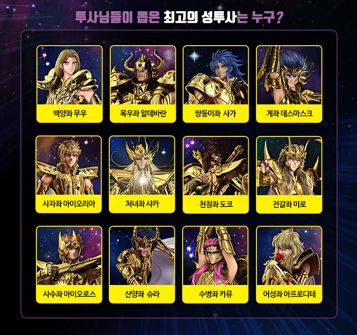 사전예약 하면서 자기가 생각하는 최고의 성투사 뽑는 이벤트가 있어서