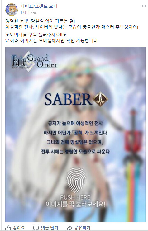 페그오 페이스북 가니까 신기 한게 나왔어욤 ㅋㅋ