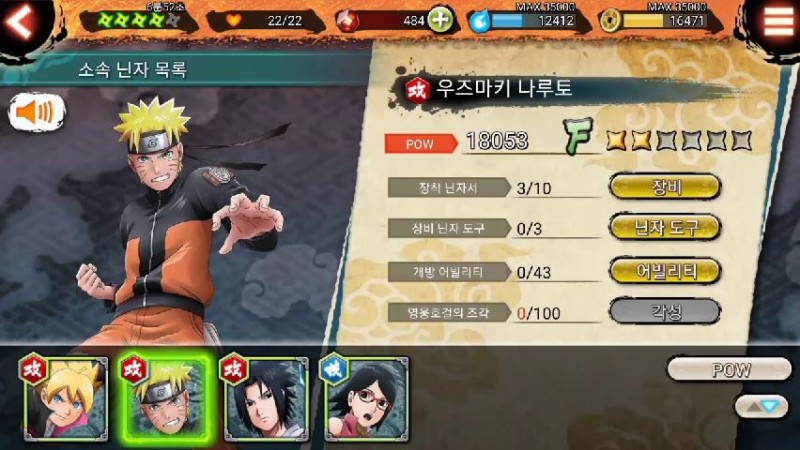 소환했는데 오..이노 인술 닌자서도 하나 씩 모아놔야겠네욤