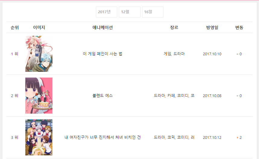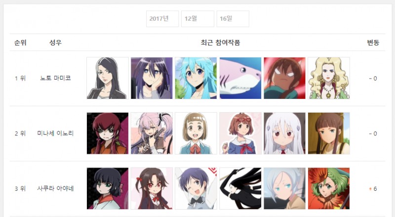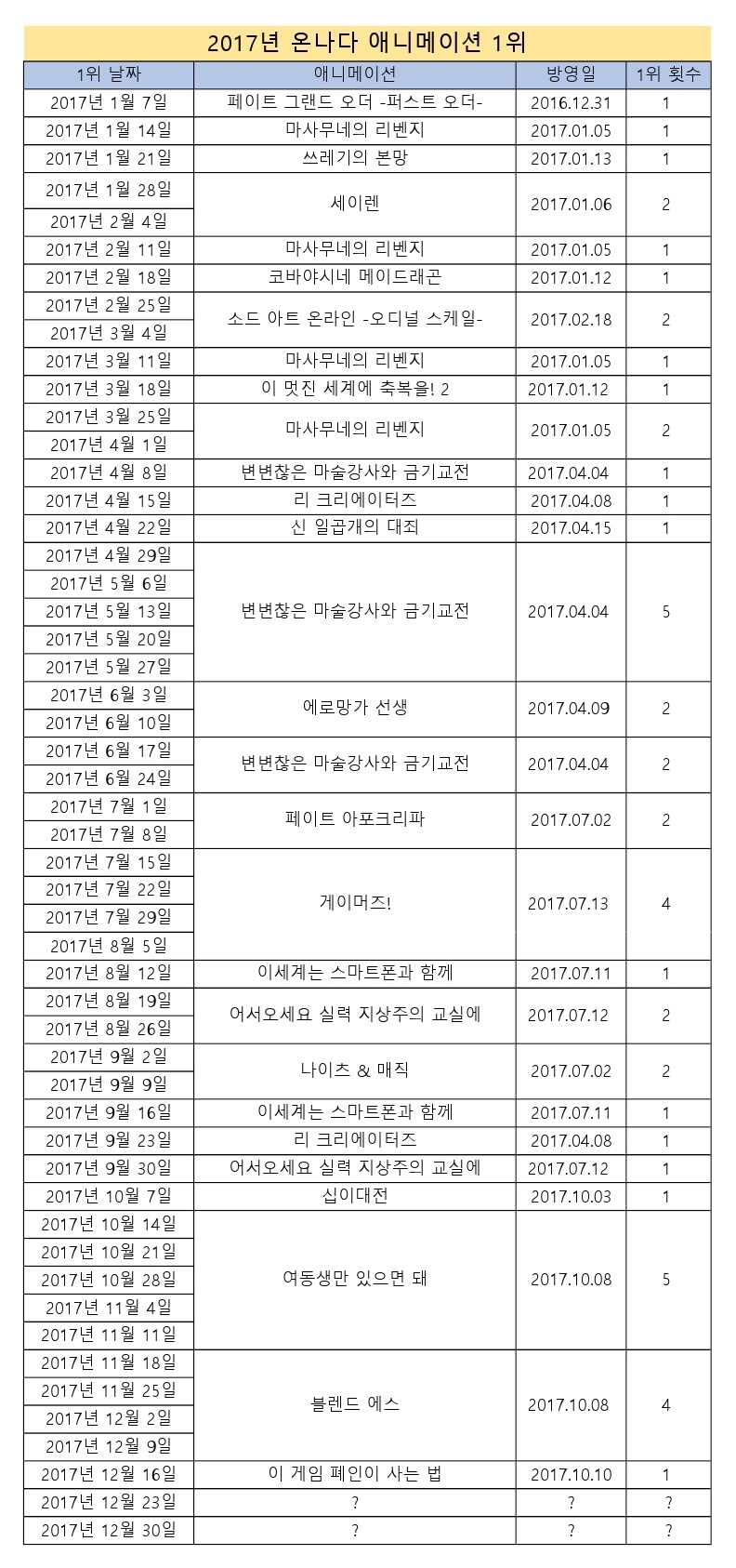 2017/12/16일자 온나다 종합 차트