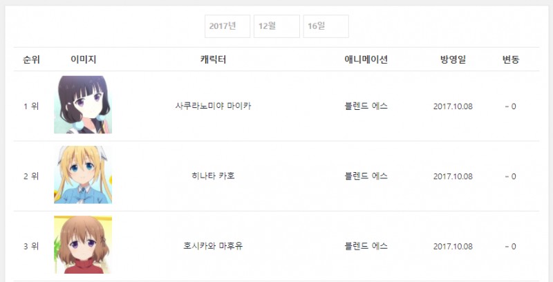 12월 16일자 온나다 종합차트입니다.
