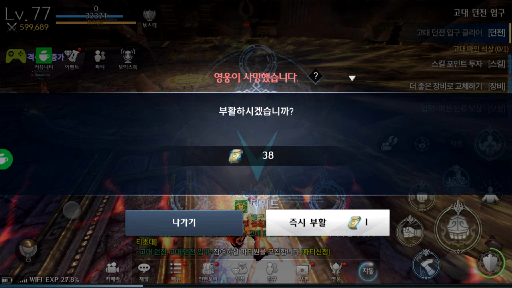 으아.. 고대던전 사망 ㅠㅠ