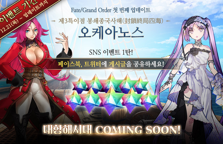 박소미 페그오 제 3장 스토리 공개된다고 합니다. [일반] 작성일시 : 2017. 12. 27 (20:30) 조회 : 2,224 / 댓글 : 0 한국 페그오가 오는 29일 제 3장 스토리 업데이트 예정이라고 합니다.그리고 업데이트 기념으로 SNS 이벤트를 진행하고 있는데요. SNS 게시글 공유하면 성정석을 준다고 합니다.마침 할로윈 픽업 이벤트 타마모여서 성정석 모아야하는데 딱 필요한 이벤트네요.할로윈 이벤트 오늘 업데이트 됐던데 1장 오를레앙 클리어해야 이벤트 할 수 있더라구요.어차피 3장 오케아노스 하려면 스토리 쭉쭉 진행시켜놔야하니까 오늘부터 페그오 열심히 해보겠습니다. 7추천 글쓰기스크랩 신고