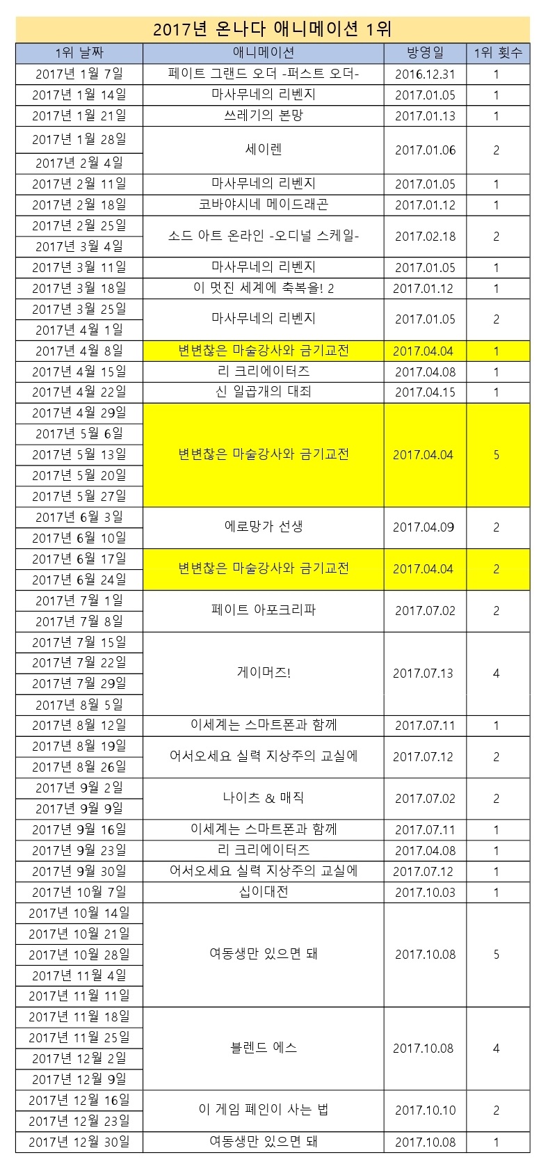 1위 - 변변찮은 마술강사와 금기교전 (2017.04.04) [8주]