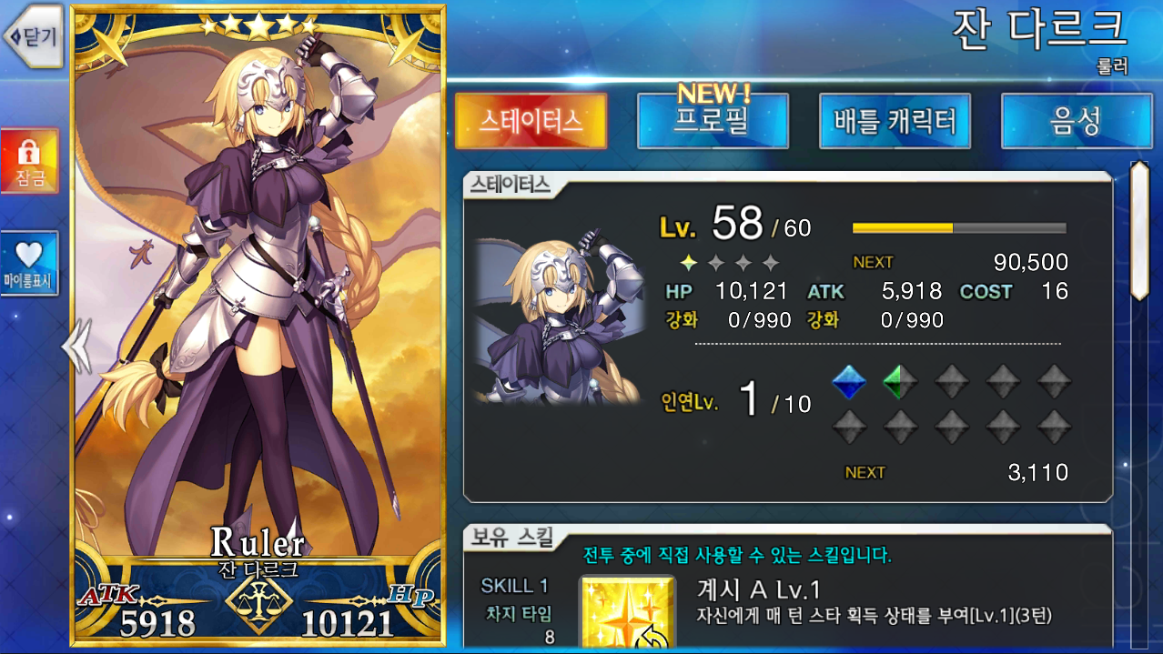 그리고 스카사하 뽑을라고 성정석 3개로 단뽑했다가 나온 잔느에욧! 진짜 처음에 잔느 가지고 싶었는데