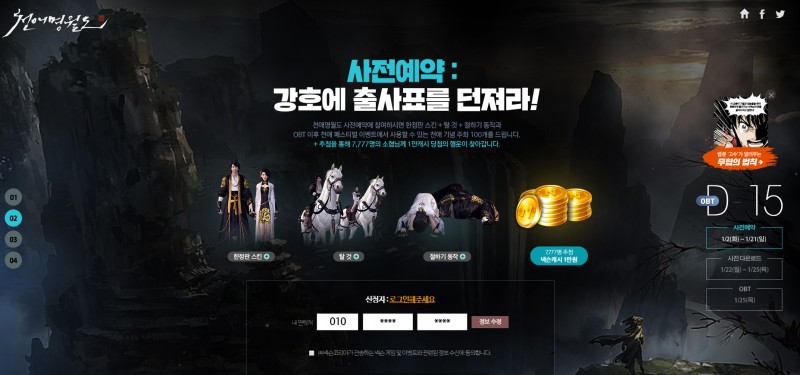 1월 21일까지 천애명월도 공식 홈페이지에서 사전예약 신청이 가능합니다.