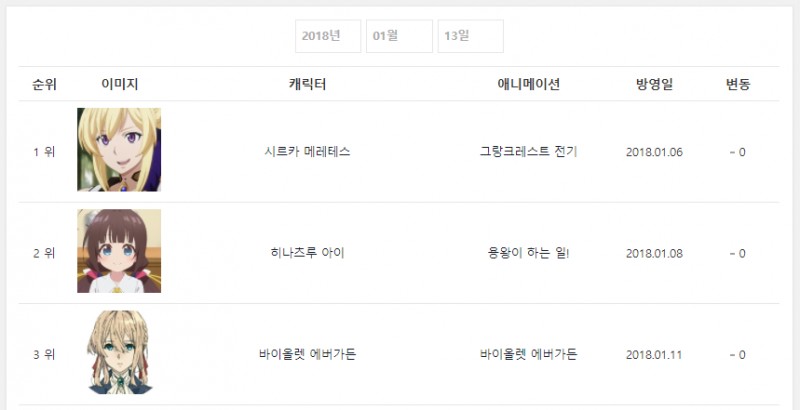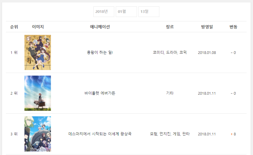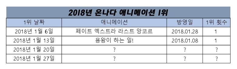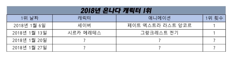 현재 1위 : 페이트 엑스트라 라스트 앙코르 (2018.01.28), 용왕이 하는 일! (2018.01.08)