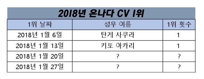 현재 1위 : 탄게 사쿠라, 키토 아카리