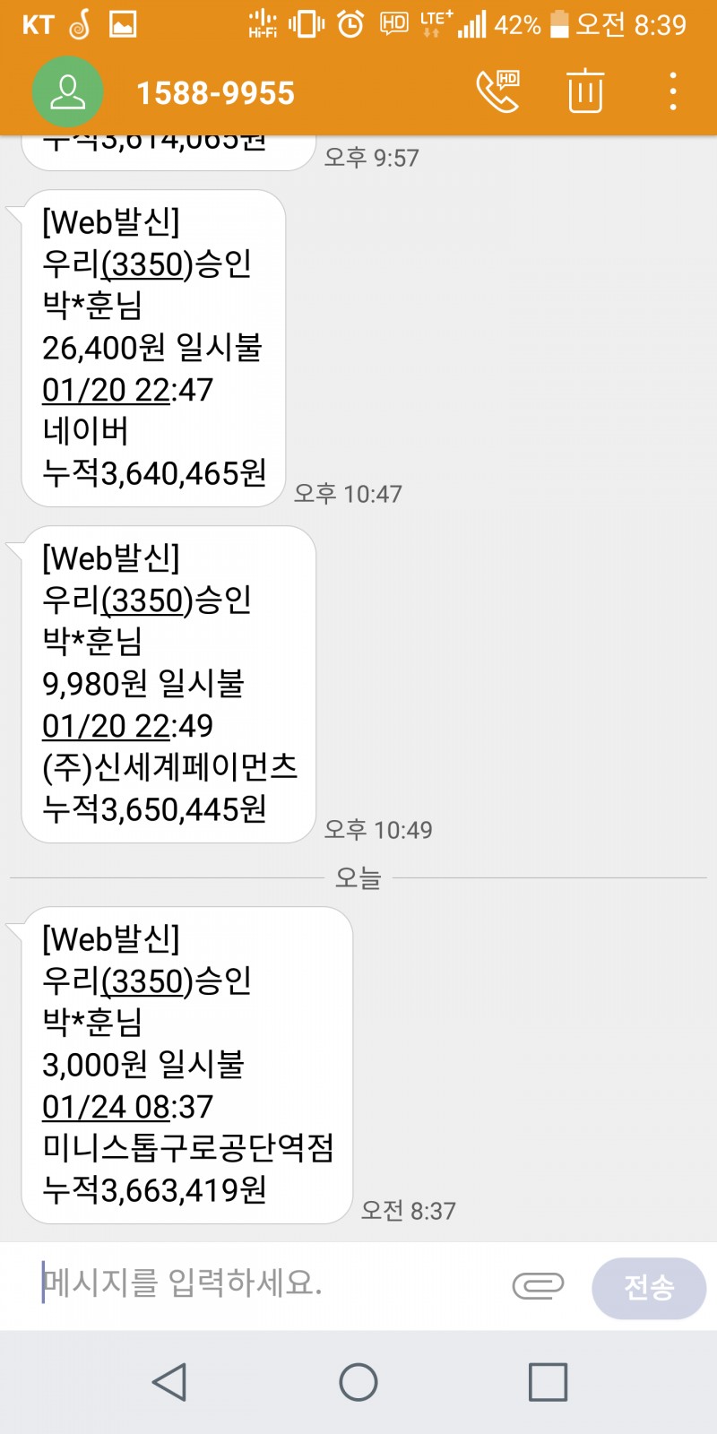 저는 왠만하면 카드 사용안하는데...