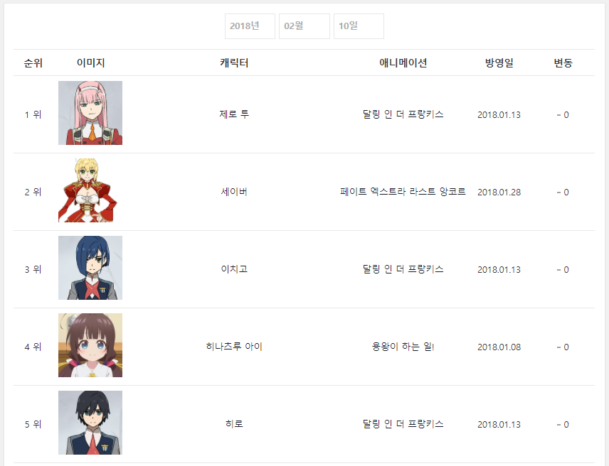 * 2018년 2월 10일 - 달링 인 더 프랑키스 (2018.01.13) [2주] *