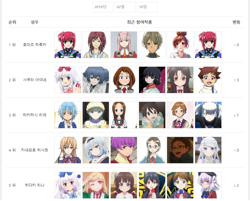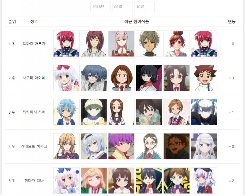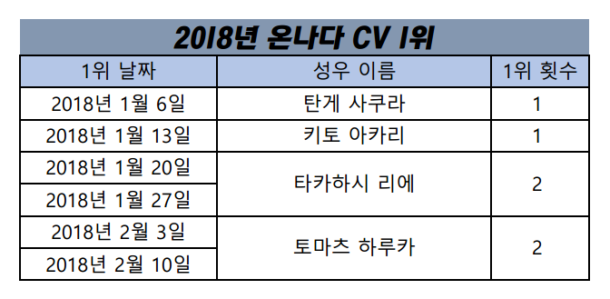 현재 1위 : 타카하시 리에, 토마츠 하루카 [2주]