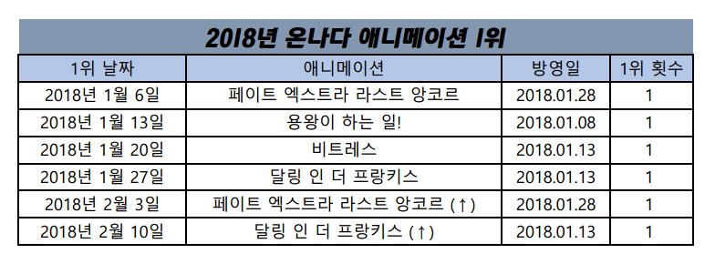 2018/2/10일자 온나다 종합 차트