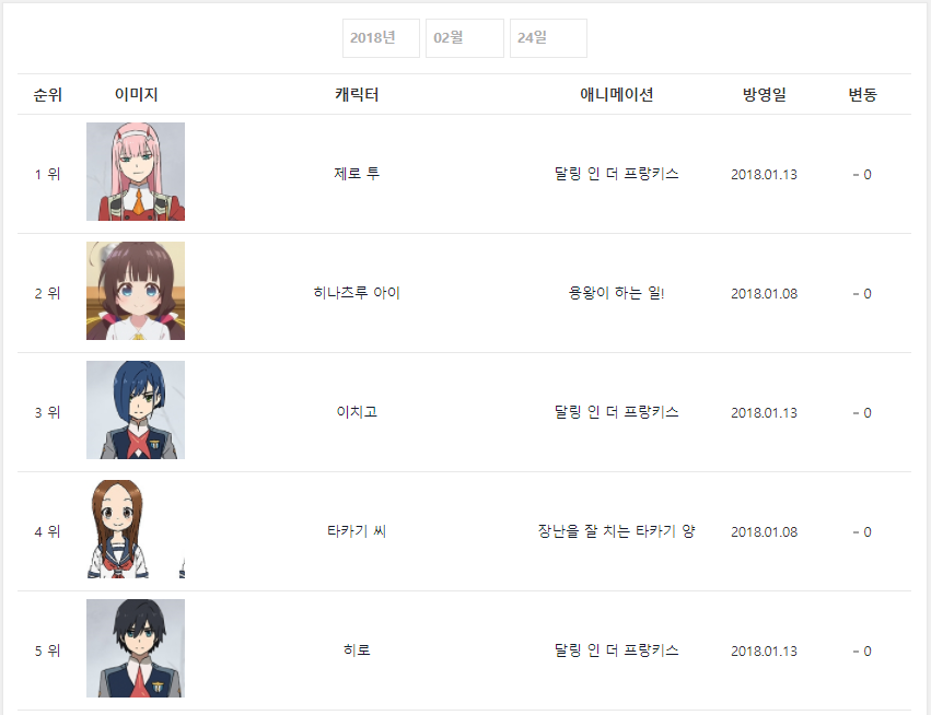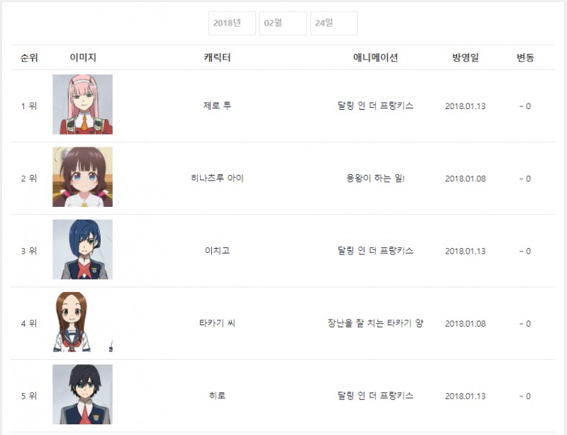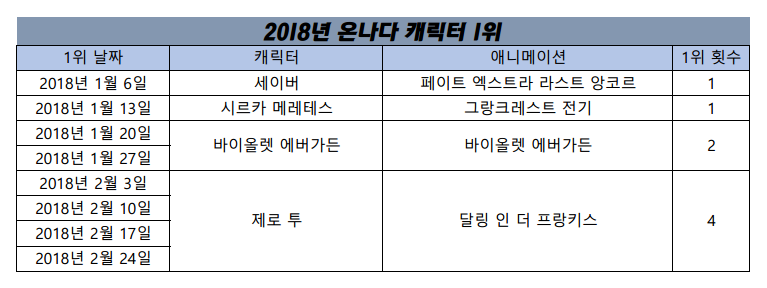 현재 1위 : 제로 투 (달링 인 더 프랑키스) [4주]