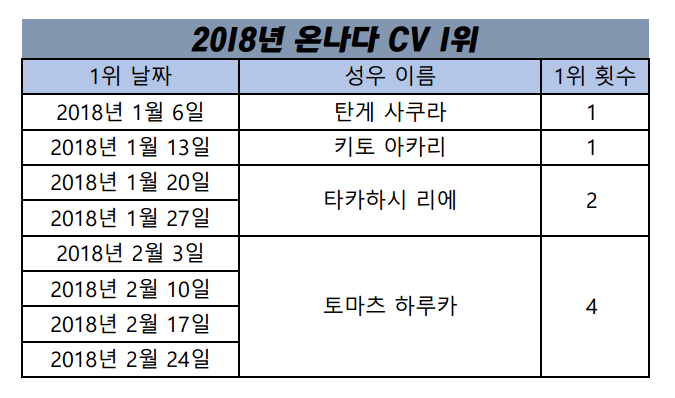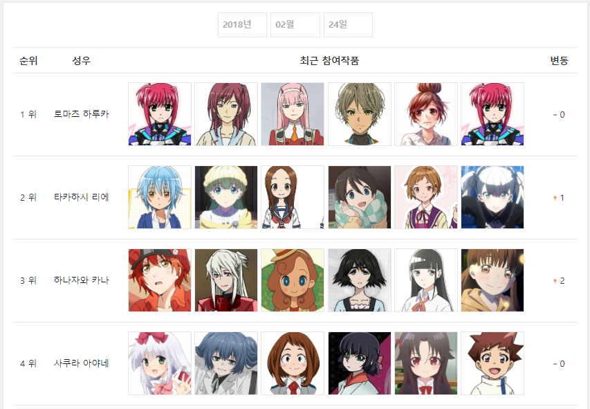 제로 투랑 성우 토마츠 하루카가 4주째 1위 중이네요ㅋㅋ