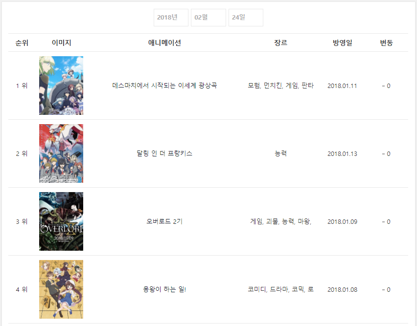 * 2018년 2월 24일 - 데스마치에서 시작되는 이세계 광상곡 (2018.01.11) [2주] *