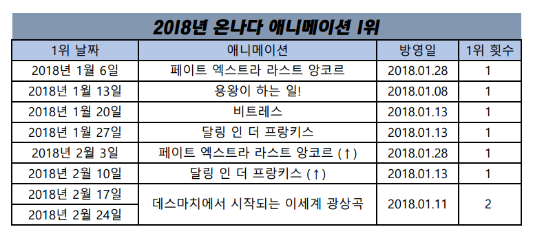 2018/2/24일자 온나다 종합 차트