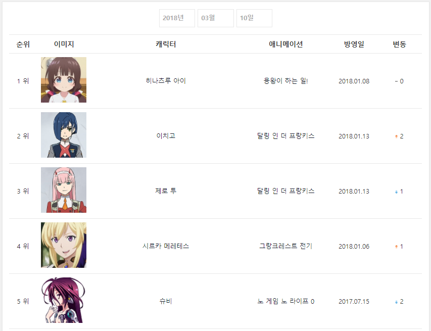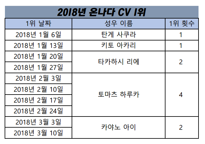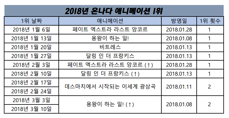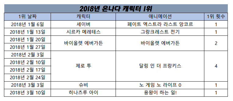 캐릭터 1위에 힘입어 애니도 2주 연속 1위 가능할 수 있었습니다.
