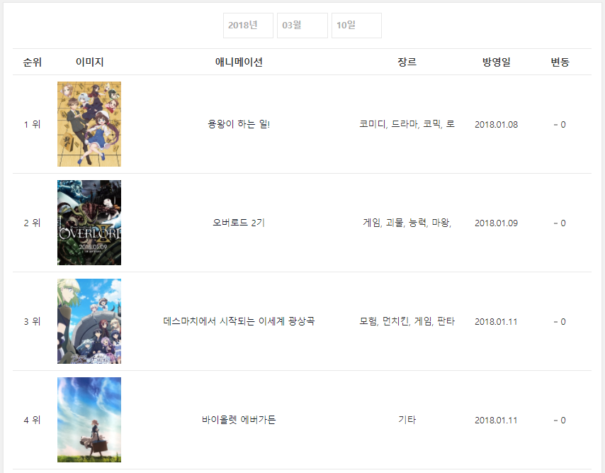 2018/3/10일자 온나다 종합 차트