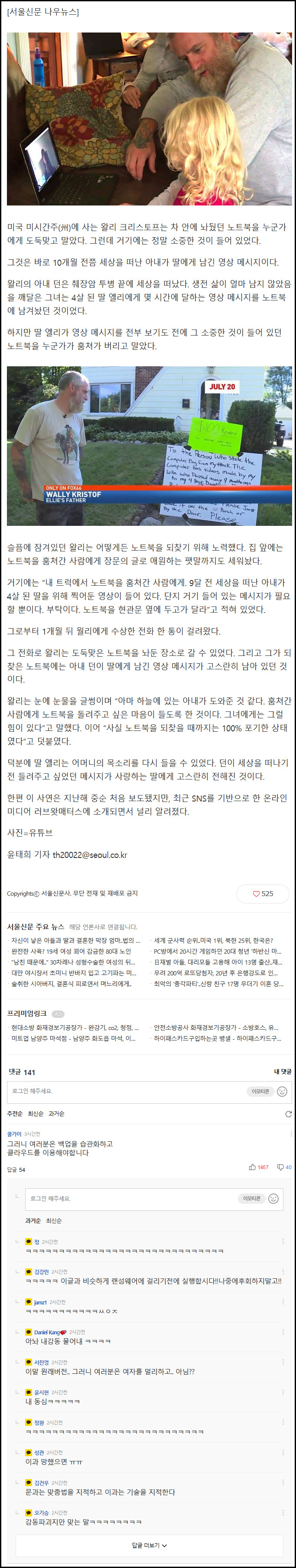 토모키 도둑이 훔쳐간 노트북 되돌려준 놀라운 이유 [일반] 작성일시 : 2018. 03. 25 (19:13) 조회 : 2,881 / 댓글 : 2 출처(링크) : http://v.media.daum.net/v/20180325154103272 8추천 글쓰기스크랩 신고