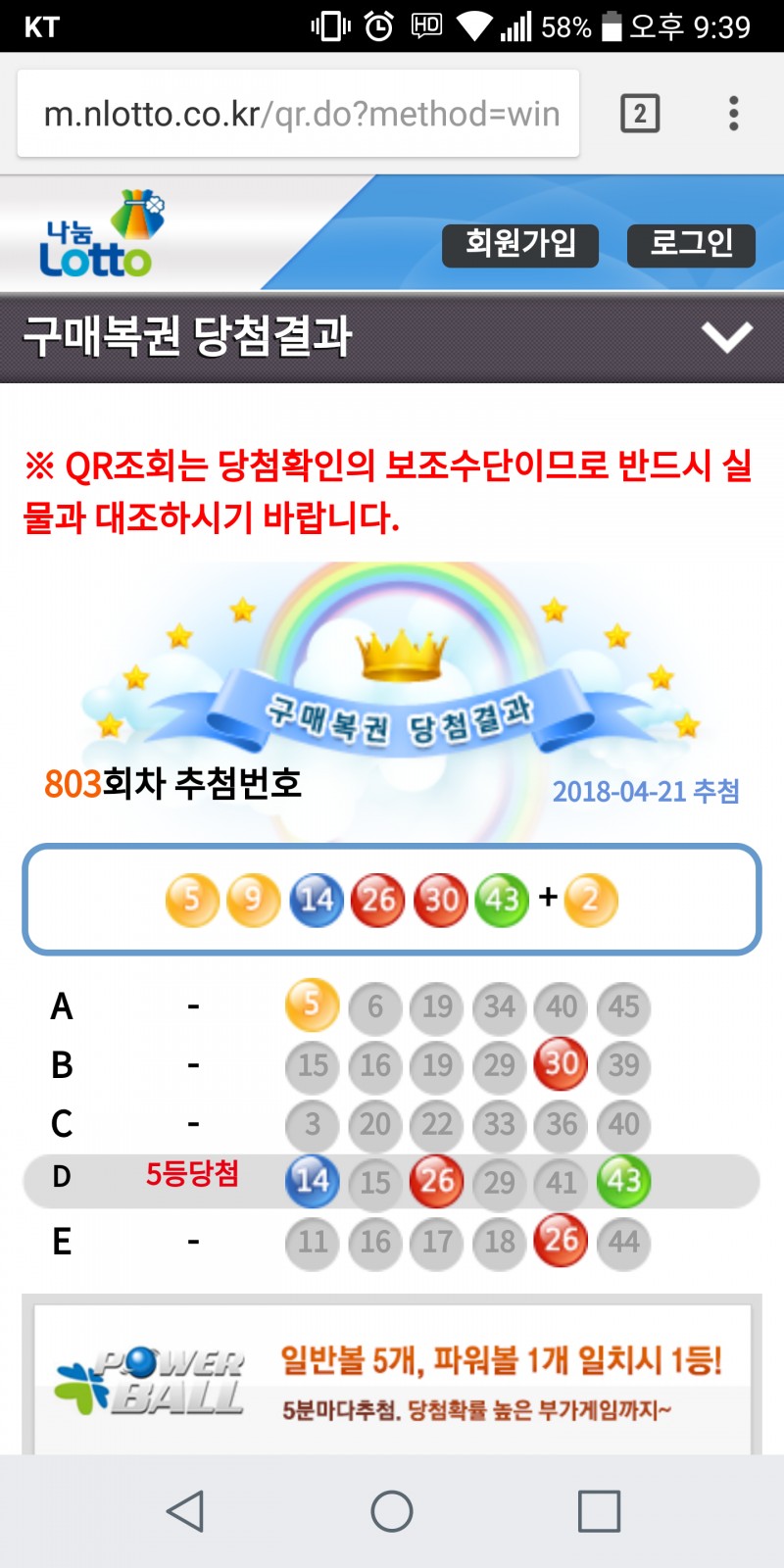 그래도 5등 당첨이시네요~