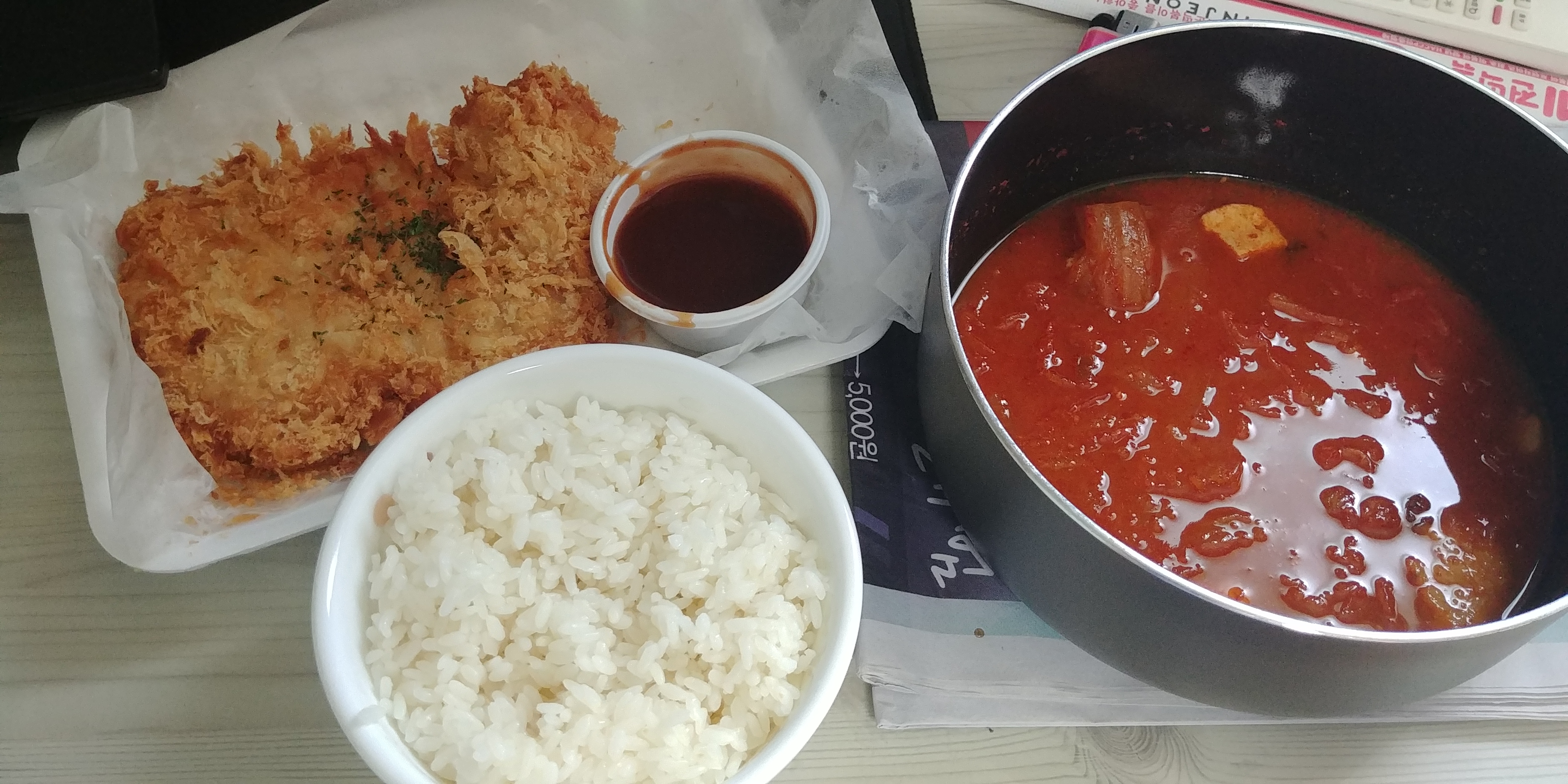 노호홍 늦은 점심 [일반] 작성일시 : 2018. 05. 11 (15:26) 조회 : 2,224 / 댓글 : 5 학교 근처에서 파는 2500원짜리 돈까스 포장해와서 밥 먹는 중입니다.와 김치찌개랑 같이 먹으니까 진짜 맛있네 6추천 글쓰기스크랩 신고
