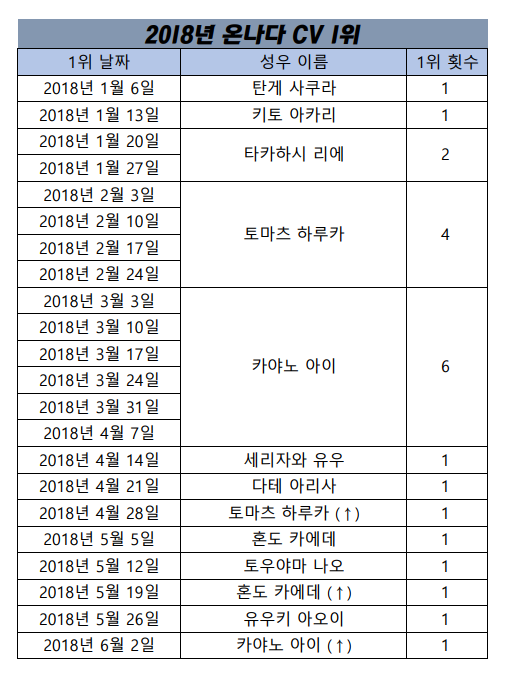 현재 1위 : 카야노 아이 [7주]