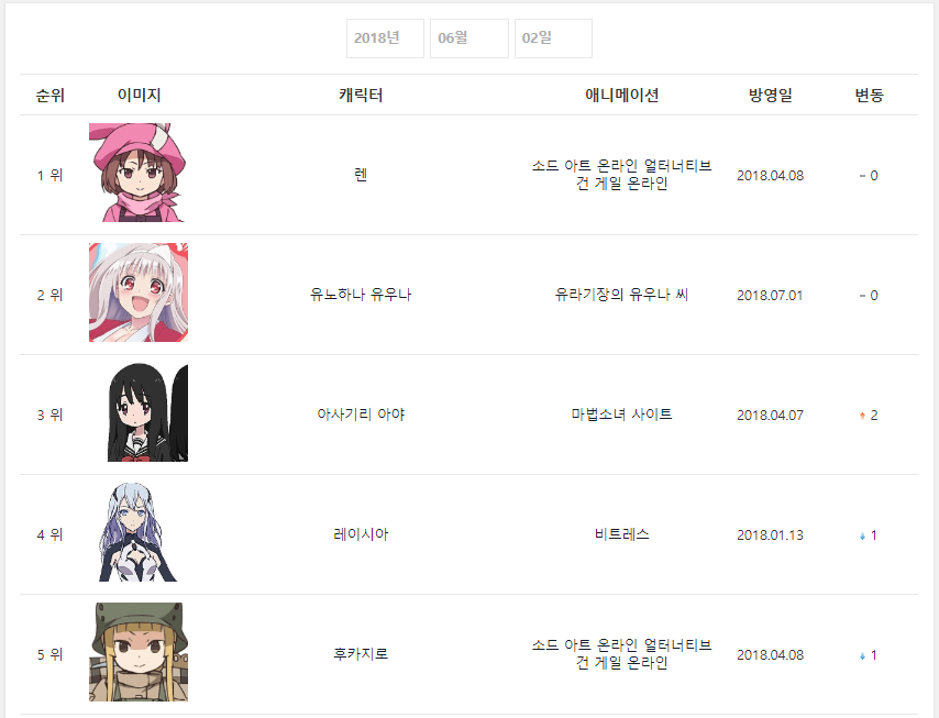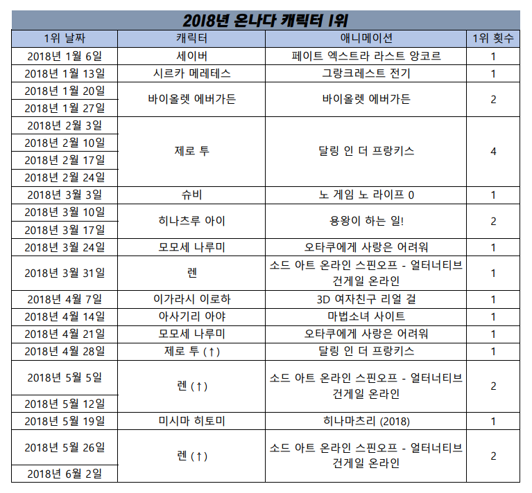 2018/6/2일자 온나다 종합 차트