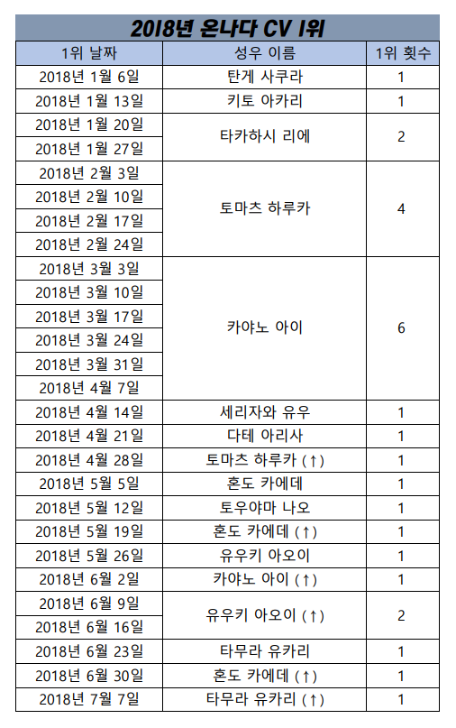 현재 1위 : 카야노 아이 [7주]