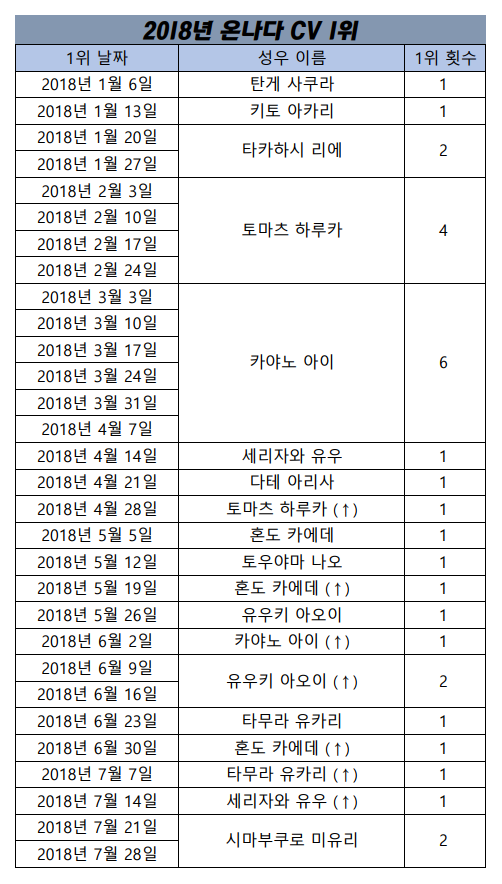 현재 1위 : 카야노 아이 [7주]