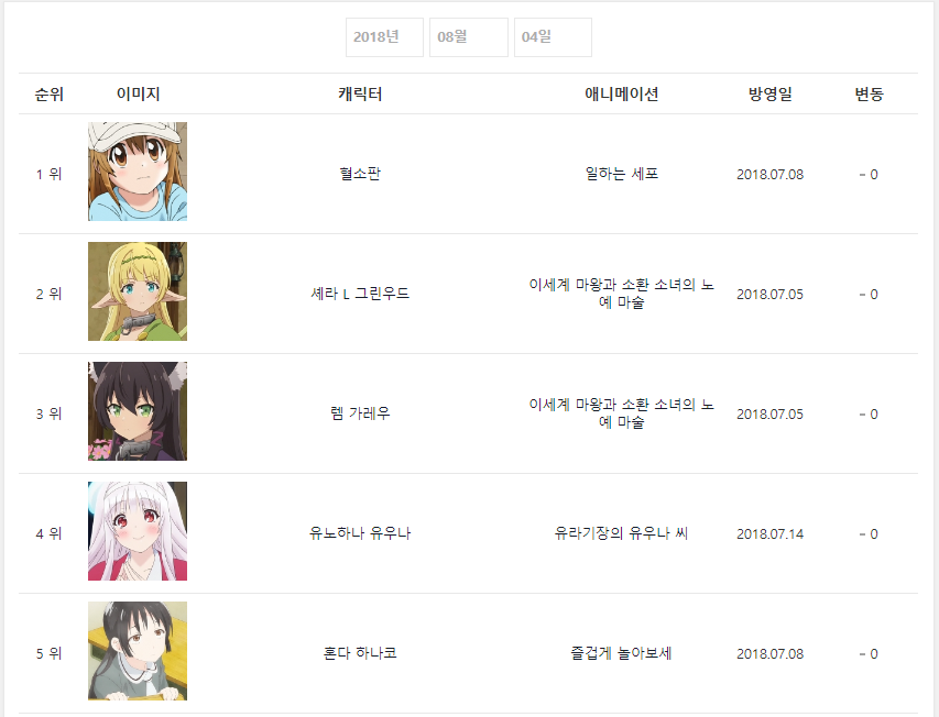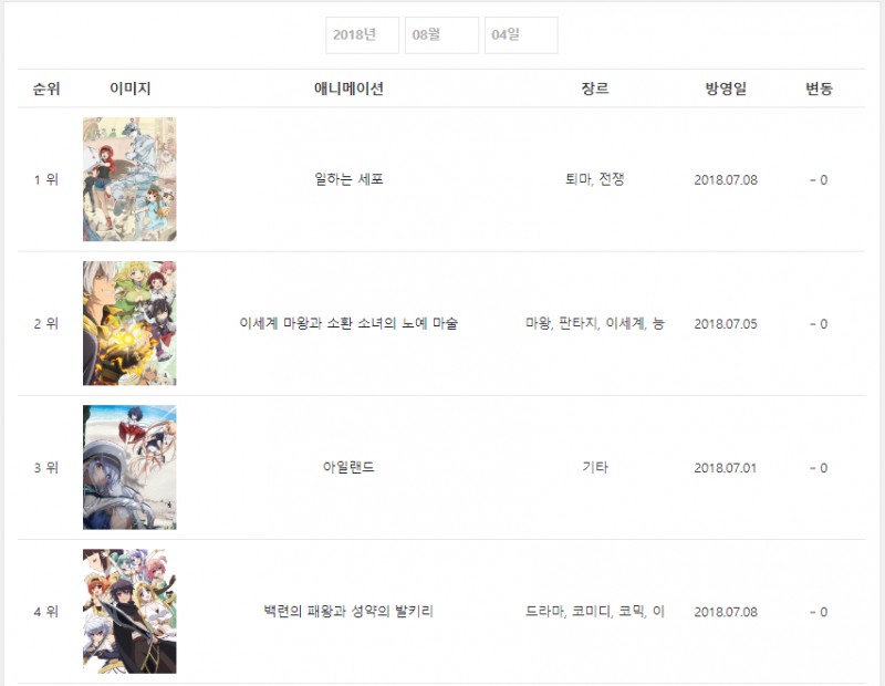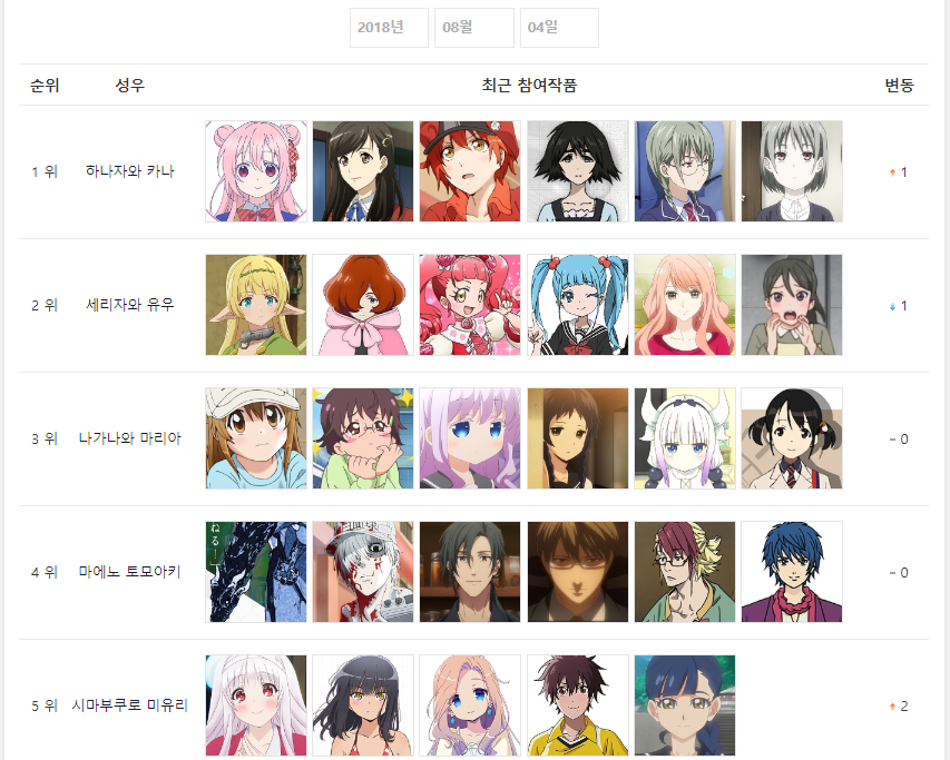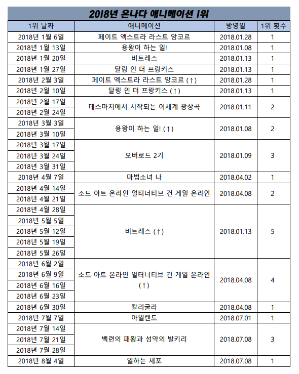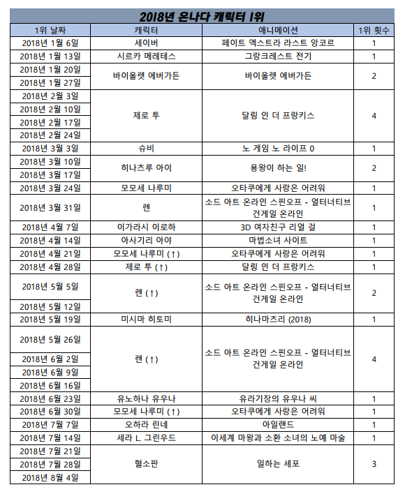 그에 힘입어 애니메이션이랑 올만에 하나카나가 1위!
