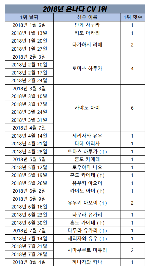 현재 1위 : 카야노 아이 [7주]