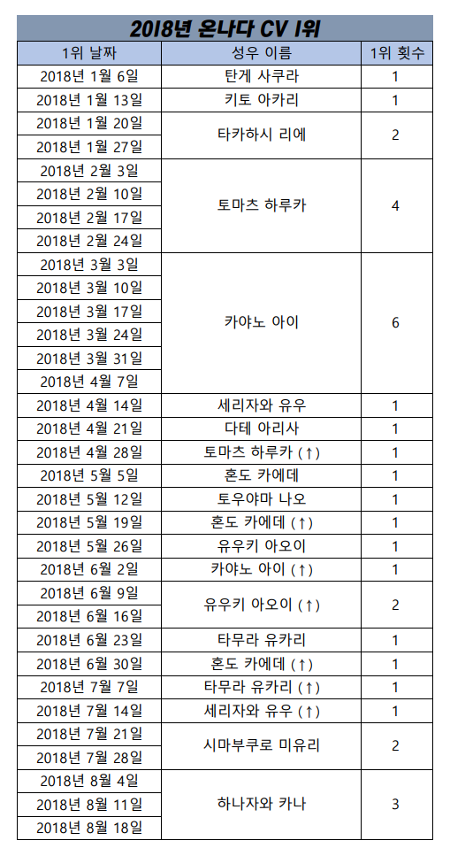 현재 1위 : 카야노 아이 [7주]