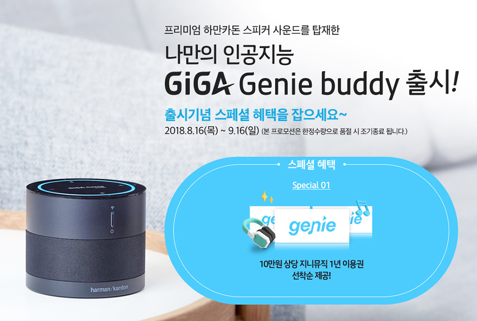 온나다나와 드디어 구매 결정 했어요! [일반] 작성일시 : 2018. 08. 27 (19:53) 조회 : 2,417 / 댓글 : 1 친구놈 자취방에 놀러갔다가 기가지니로 대화하는 거보고 살작 부러웠는데 이번에 기가지니 버디가 새로 나와 구매 하려고합니다. 프로모션 기간동안 지니뮤직 1년 이용권도 받고 KT샵에서 구매하면 특별 할인 혜택도 받더군요. 일단 군더덕이 없이 작고 심플해서 상당히 마음에 들것 같습니다. 4추천 글쓰기스크랩 신고