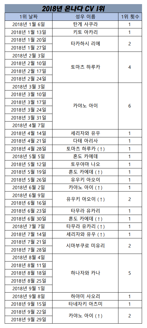 현재 1위 : 카야노 아이 [9주]