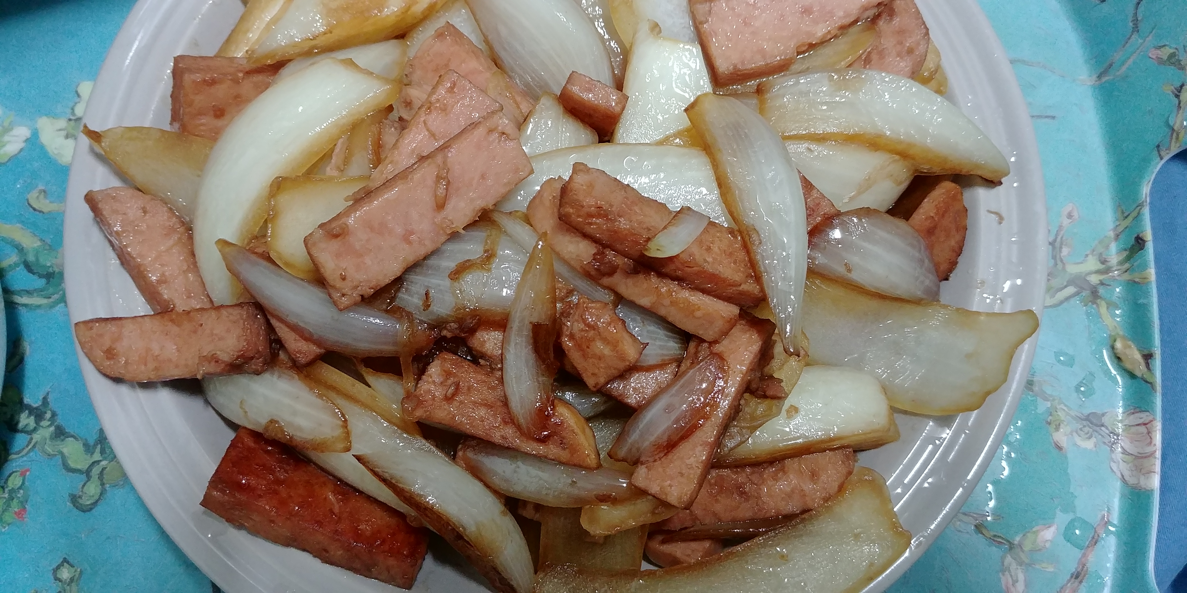 은 양파 스팸볶음이네요!