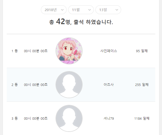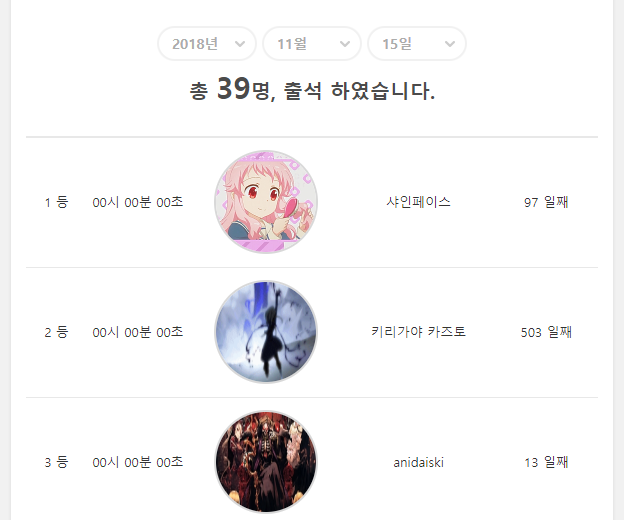 최근에 출석 체크를 3일 연속 1등을 하고 있네요ㅋㅋ