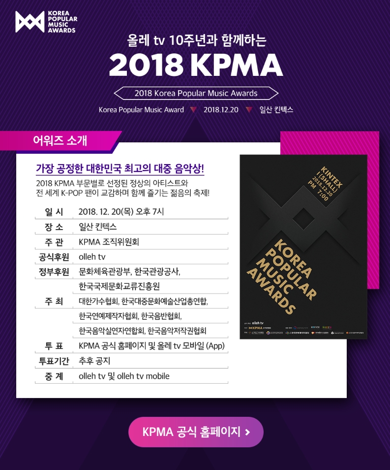 서핑쟁이 공연보러가실분~ [일반] 작성일시 : 2018. 12. 04 (19:04) 조회 : 2,460 / 댓글 : 0 12월이다보니까 시상식이랑 연말콘서트가 대부분 있더군요거기다 이번에 2018 KMPA라고 새로운 시상식 한다고 합니다워너원, BTS, 마마무, 레드벨벳 등 여러 아이돌 온다니까 한번 보러가야겠어요!올레tv 나 올레tv모바일 고객이면 초대권이랑 굿즈 교환권 준다니까참고하세요~ 3추천 글쓰기스크랩 신고