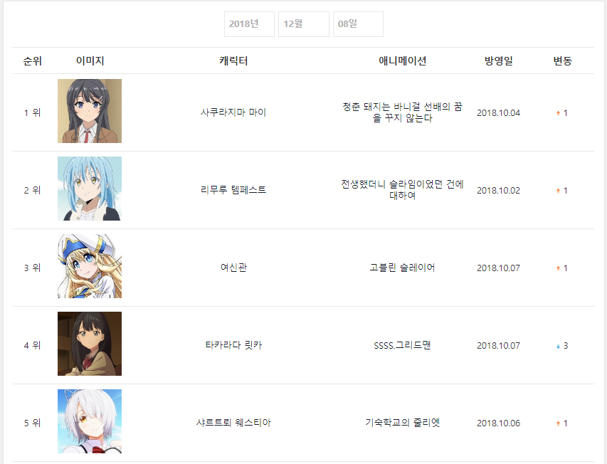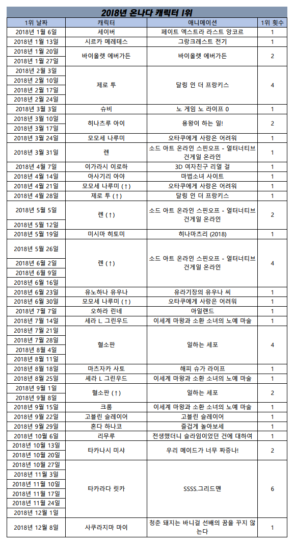 4분기는 고블린 슬레이어 빼고 전생슬, 소아온3기, 그리드맨이 골고루 3주 1위를 했습니다.