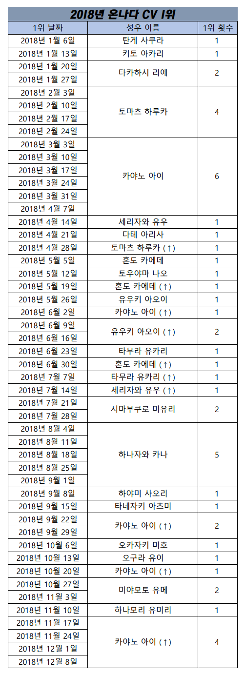 현재 1위 : 카야노 아이 [14주]