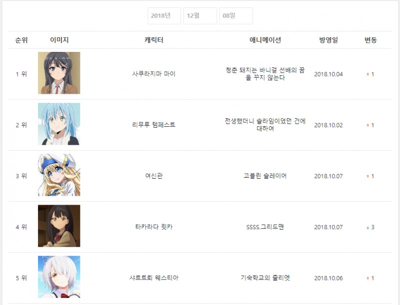 드디어 청춘돼지 여주인공 마이가 릿카를 제치고 1위를 차지했네요!