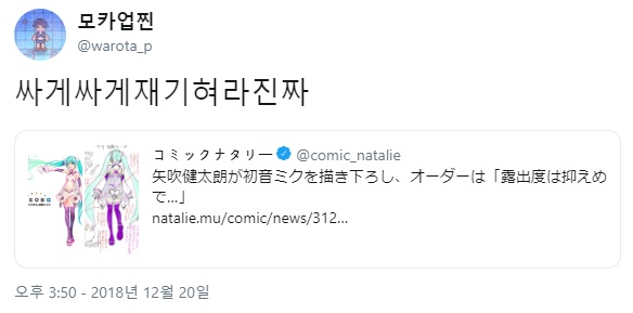 그리고 위의 하츠네 미쿠 일러스트를 보고 빡친 트위터 언냐