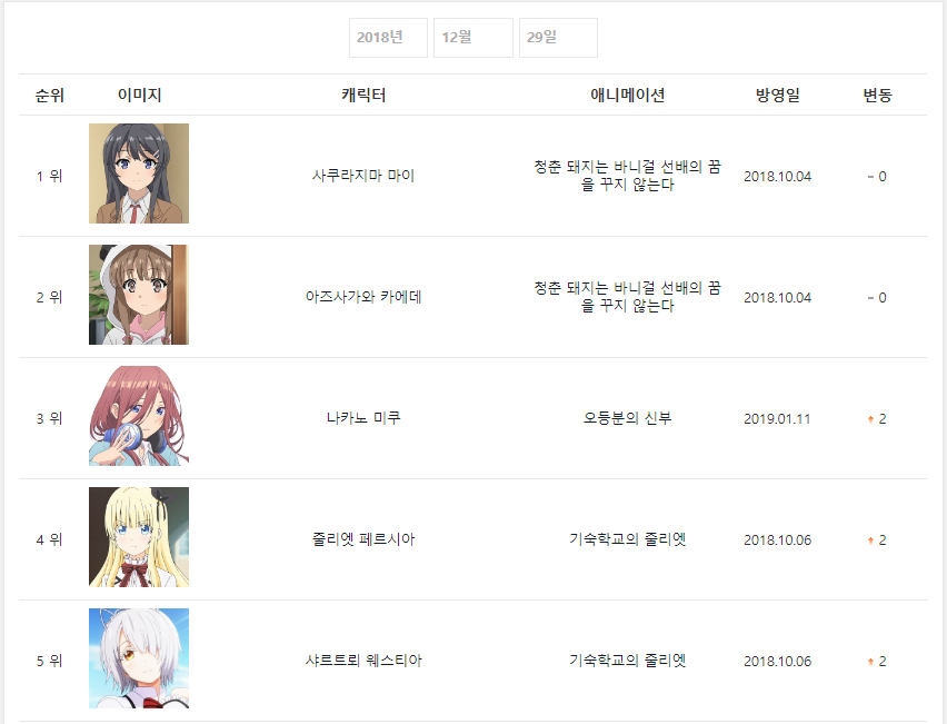 캐릭터에 마이가 다시 1위로 올라왔군요.