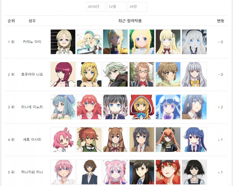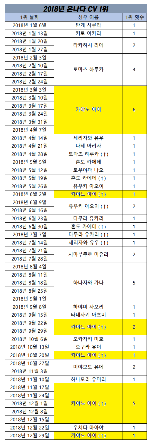 심지어 올해 마지막주까지도 카야노 아이가 1위로 마무리를 짓네요ㅋㅋ