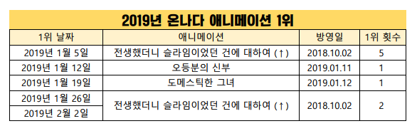 2019/2/2일자 온나다 종합 차트