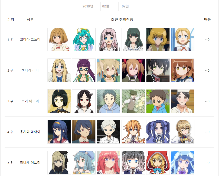 CV는 작년에 방영했던 '즐겁게 놀아보세'에 캐릭터를 맡은 코하라 코노미가 1위입니다.