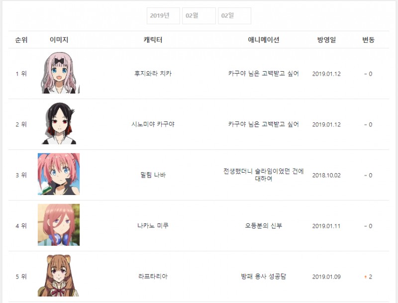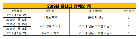 현재 1위 : 시노미야 카구야 (카구야 님은 고백받고 싶어) [2주]