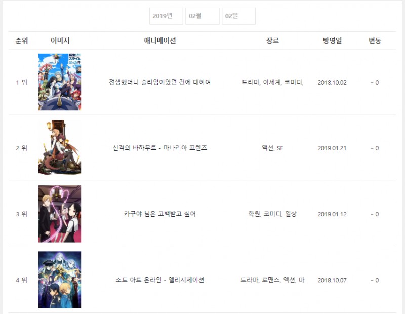 현재 1위 : 전생했더니 슬라임이었던 건에 대하여 (2018.10.02)