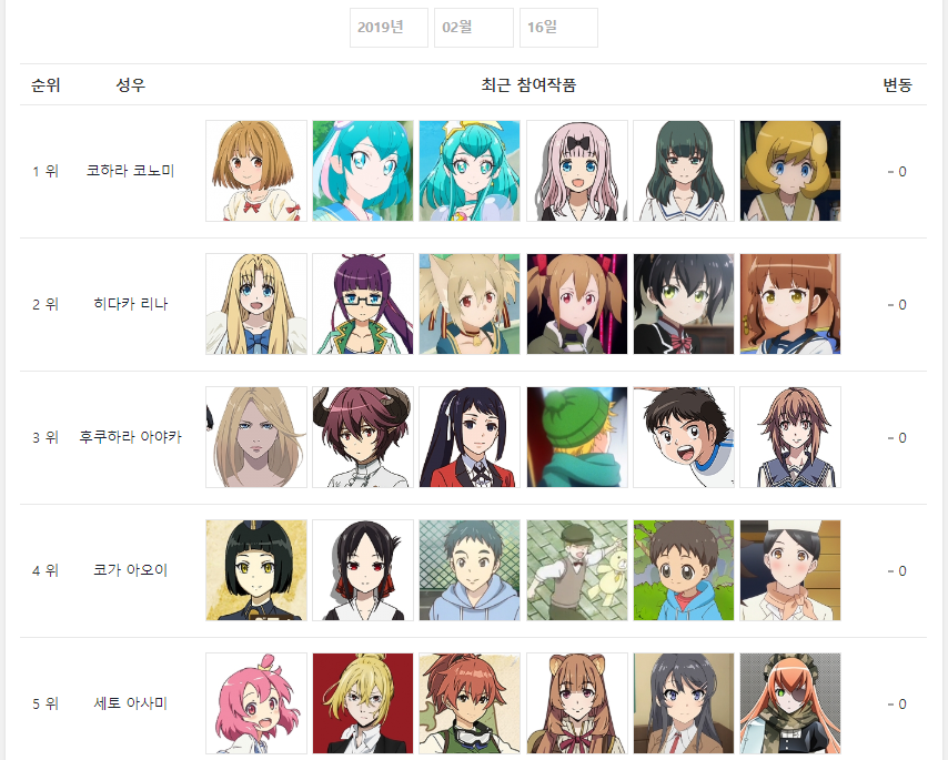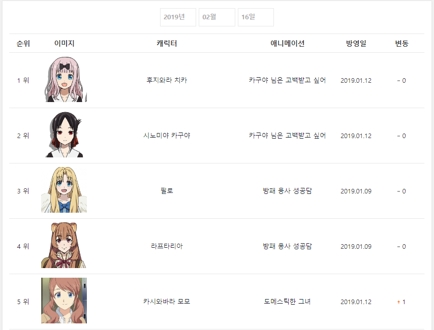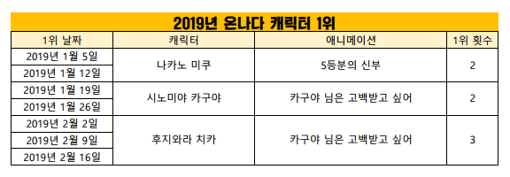 현재 1위 : 후지와라 치카 (카구야 님은 고백받고 싶어) [3주]
