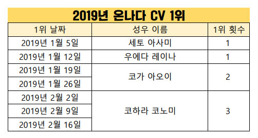 현재 1위 : 코하라 코노미 [3주]